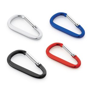 Mosquetão. Alumínio. Com área plana para gravação. 24 x 48 x 4 mm