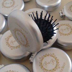 Escova com espelho redonda em plástico resistente. Parte superior plana e parte inferior emborracha com relevo, estando aberta a peça basta empurrar a parte emborrachada(lado de fora) para poder utilizar a escova.