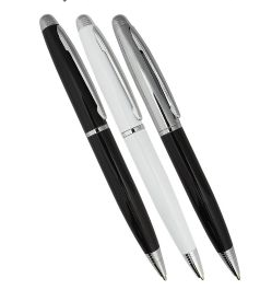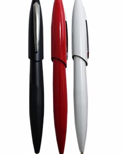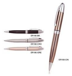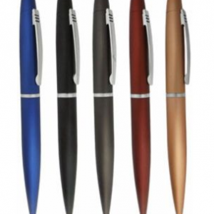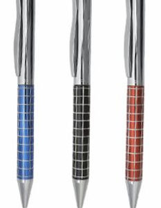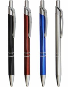 Caneta metal inteira colorida com detalhes prata. Clip metal, possui 31 anéis em relevo na mesma cor da caneta. Aciona por clique.