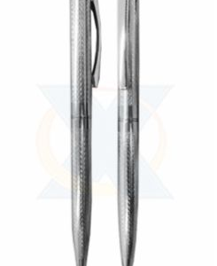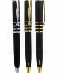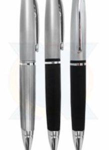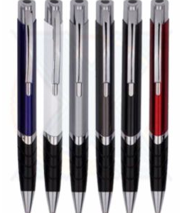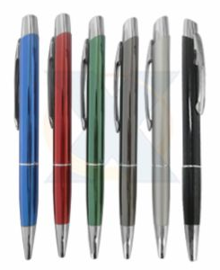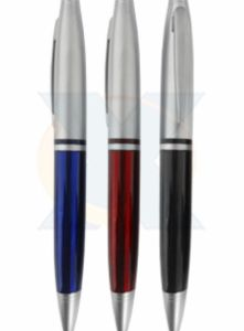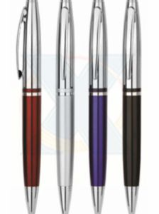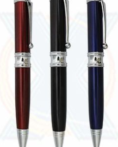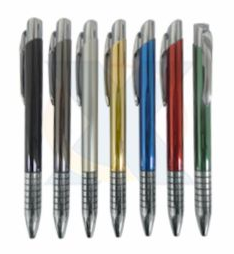 Caneta metal colorida com detalhes prata. Clip metálico prata com detalhes em relevo, tem a lateral com detalhe plástico preto. Possui dois anéis prata na parte inferior. Aciona por clique.