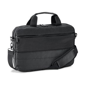 Pasta para notebook. 840D jacquard e 300D. Compartimento para notebook 13.3”. Interior forrado e almofadado. Alça de ombro e alça para transporte em trolley. 360 x 260 x 50 mm