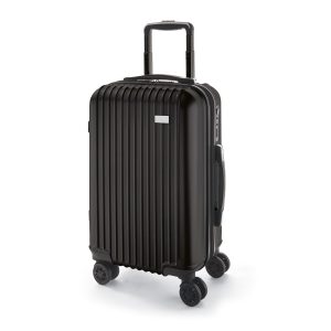 Mala de viagem executivo. ABS e PET. Interior forrado, com divisória. 4 rodas duplas giratórias. Pega extensível em alumínio, com mola (altura pega estendida: 500 mm). Fecho de segurança com senha. Chapa metálica removível para fácil gravação. 450 x 650 x 250 mm | Chapa: 60 x 30 mm