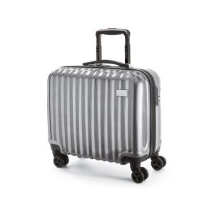 Mala para notebook. ABS e PC. Interior forrado e compartimento interior para notebook 15.6”. 4 rodas duplas giratórias. Pega extensível em alumínio, com mola (altura pega estendida: 610 mm). Fecho de segurança com senha. Chapa metálica removível para fácil gravação. 430 x 410 x 225 mm | Chapa: 50 x 30 mm