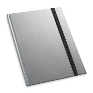 Caderno capa dura. Com porta esferográfica, bolso interior e 80 folhas não pautadas cor marfim. 137 x 210 mm