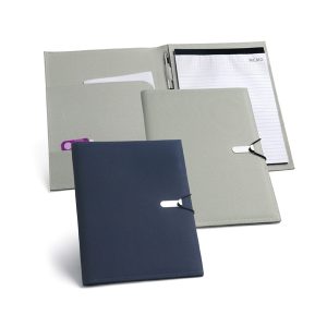 Pasta A4. Linho sintético e c. sintético. Bloco: 20 folhas pautadas. Chapa metálica com acabamento emborrachado. Acessórios não inclusos. 259 x 336 x 27 mm | Chapa: 50 x 30 mm