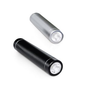 Bateria portátil. Alumínio. Com lanterna. Bateria de lítio. Capacidade: 2.600 mAh. Tempo de vida ≥ 500 ciclos. Com entrada/saída 5V/1A. Incluso cabo USB/micro-USB para carregar a bateria. ø23 x 108 mm