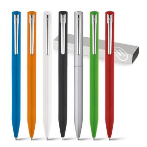 Esferográfica em alumínio com mecanismo twist. Clipe em ferro com cromagem brilhante. Corpo laqueado com acabamento brilhante. Recarga em metal “tipo-Cross”. Tinta Dokumental®. ø10 x 138 mm | Estojo de cartão: 175 x 41 x 20 mm