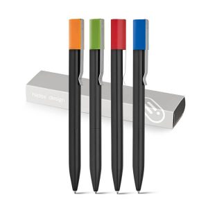Esferográfica em alumínio e ABS com mecanismo twist. Clipe em aço inox. Corpo laqueado com acabamento matt. Recarga em metal D1. Tinta Dokumental®. ø10 x 142 mm | Estojo de cartão: 175 x 41 x 20 mm