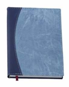 Agenda diária 2017 com espiral, couro sintético nas cores: azul e marrom.