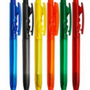 0 out of 5Caneta Plástica Preço fosca inteira colorida com detalhes prata. Clip plástico e ponta superior prata, possui dois anéis centrais prata. Aciona por giro.