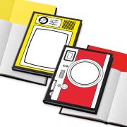 Caderno capa dura. C. sintético. Com porta esferográfica e 80 folhas pautadas. 90 x 140 mm
