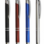0 out of 5Caneta metal emborrachada colorida com detalhe emborrachado. Possui clip plástico prata brilhante, parte inferior com detalhe emborrachado preto com relevo. Aciona por clique.