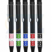 0 out of 5Caneta metal emborrachada colorida com detalhe emborrachado. Possui clip plástico prata brilhante, parte inferior com detalhe emborrachado preto com relevo. Aciona por clique.