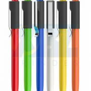 0 out of 5Caneta metal emborrachada colorida com detalhe emborrachado. Possui clip plástico prata brilhante, parte inferior com detalhe emborrachado preto com relevo. Aciona por clique.