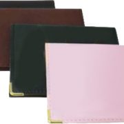 Porta documento de couro sintético, com cantoneira prateada, com capacidade para 4 cartões, com bolsos nas laterais.