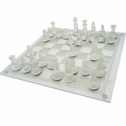 Jogo de xadrez de vidro e acrílico.