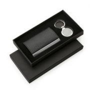 Kit estojo com caneta e lapiseira de plástico, nas cores verde e prata.