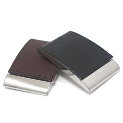 Porta Cartão Personalizado de couro sintético liso frente e verso, parte inferior da “tampa” em metal brilhante para personalização e laterais metálicas também. Parte interna revestida de veludo, abre/fecha por imã.
